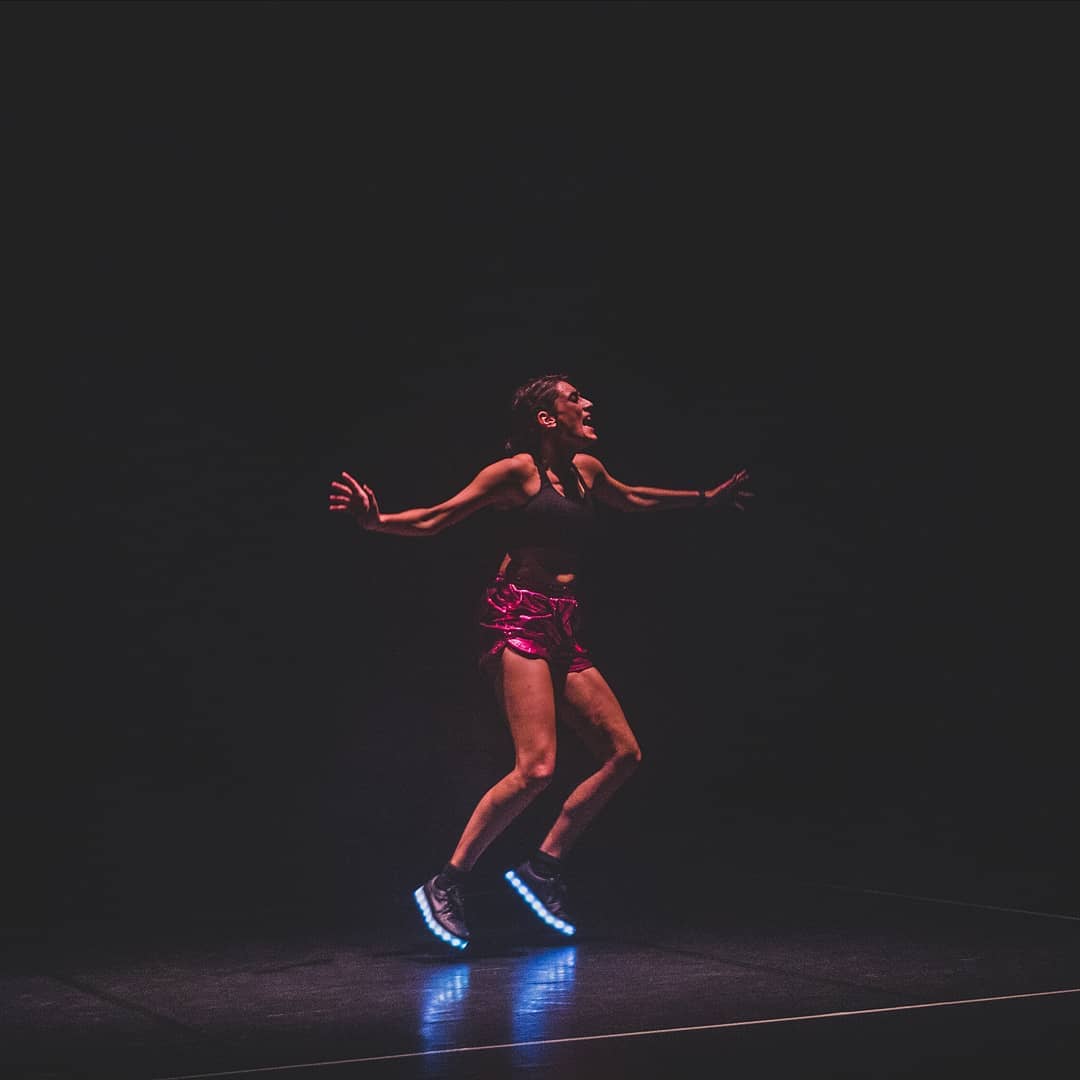En 2016 empecé esta pieza, me preguntaba si podía construir con mi cuerpo un disco space a la vez que investigaba sobre leyes un poco absurdas. De repente un día desaparecieron todos los espacios para el baile y la pieza cobró otro sentido y se resignificó. Últimamente pienso que igual sólo hago esta pieza en mi vida, la pieza de bailar, y que lo que pasa es que se va transformando, que cada vez que la hago es diferente porque todo ha cambiado, mi cuerpo, la música, el espacio, la disposición, quienes me acompañan, el exterior. Que a pesar de todos esos cambios hay algo que permanece, una especie de esencia que la mantiene con vida porque nunca sé qué es lo que va a suceder. Que siempre es una aventura hacia lo desconocido, en la que voy poco a poco e insistentemente abriendo un agujero hacia el desborde. Que mi misión es mantenerla viva, aunque todo lo de alrededor se desmorone. Y que al final es una representación de la vida. Que si la puedo seguir haciendo es porque sigo viva. Y porque soy de coño alto y hago grand battements versión cabaret discotequero. Que no es un solo porque en ella invoco a todas esas personas con las que alguna vez hemos bailado, a todas esas personas con las que compartimos ese momento de intimidad que es el baile, para bailar de nuevo, juntas. Los presentes con los ausentes. Y convocar ese momento en que por unos segundos fuimos profundamente libres.