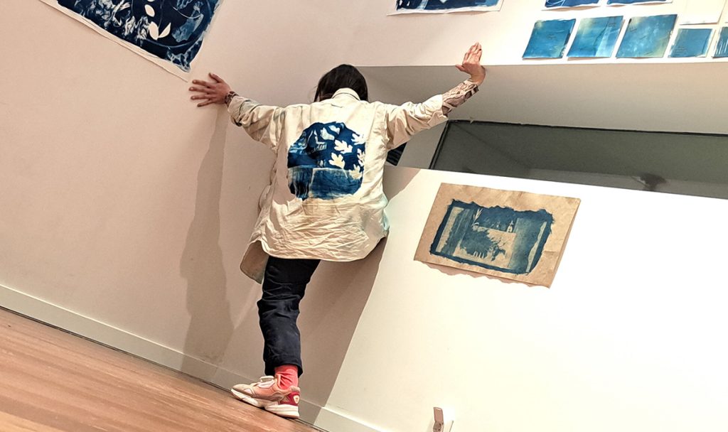 Un ejercicio de revelado de imágenes y un ejercicio de danza se encuentran en un mismo espacio y una temporalidad común: la duración del revelado viene a ser la duración de la danza – el movimiento se ve interrumpido.