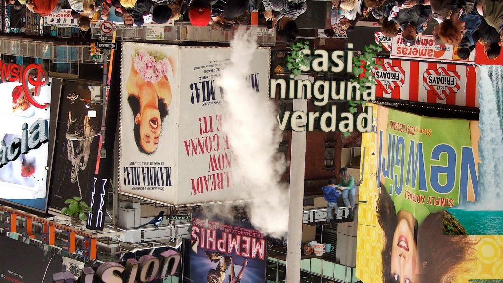 Parece que lo consigues porque puedes ver las siguientes frases: ¿Me pasó a mí? ¿No me lo contó esa actriz miope? Las palabras se vuelven a desvanecer en el fondo blanco, están demasiado en cursiva, a punto de tumbarse… entre eso y la neblina no consigues ver bien la sinopsis… ¿De qué va esta obra? Te preguntas…